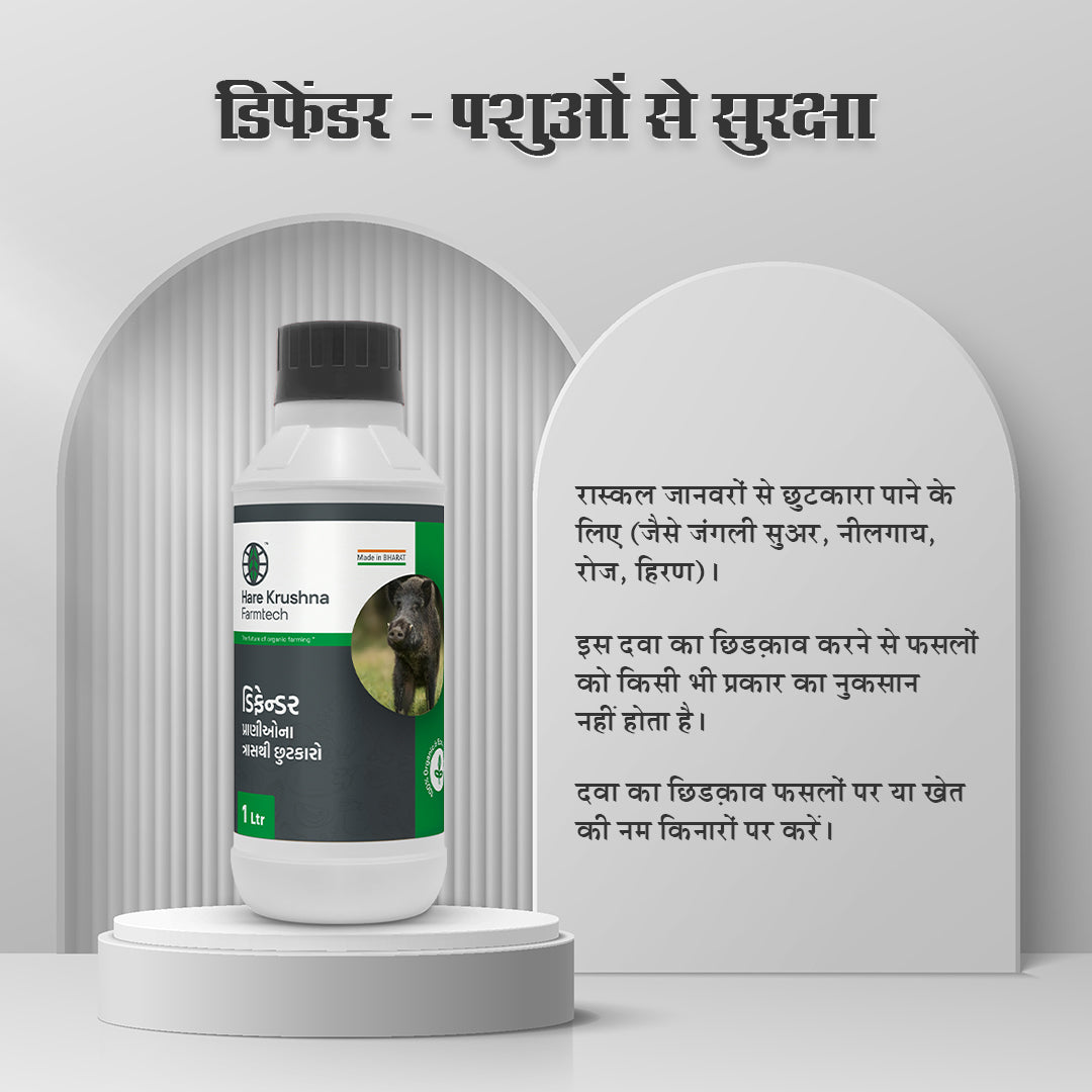 Defender is a specialized organic pesticide designed to protect farms from wild animals. Formulated from Gir cow’s urine and old buttermilk, Defender offers an eco-friendly solution to deter unwanted wildlife from entering agricultural areas.